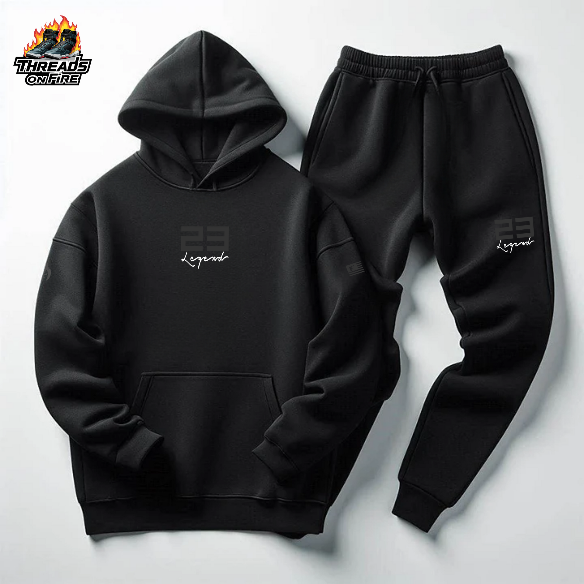 Check out our "23 Legend" Black on Black Sneaker Sweatsuit To Match Air Jordan 3 Black Cat, black on black colorway! Features a bold "23 Legend" sneakerhead graphics logo on the front in striking white color.