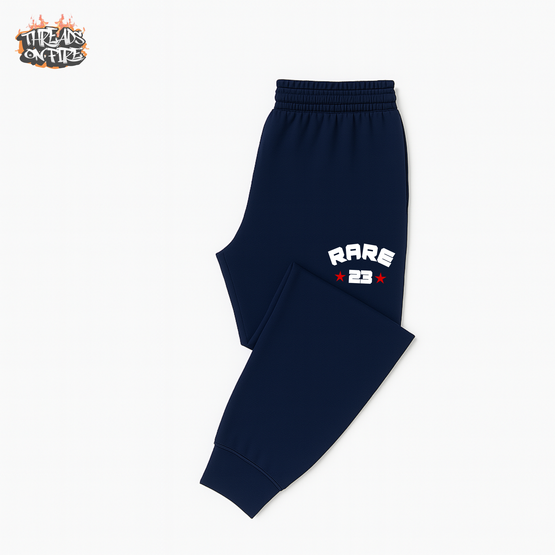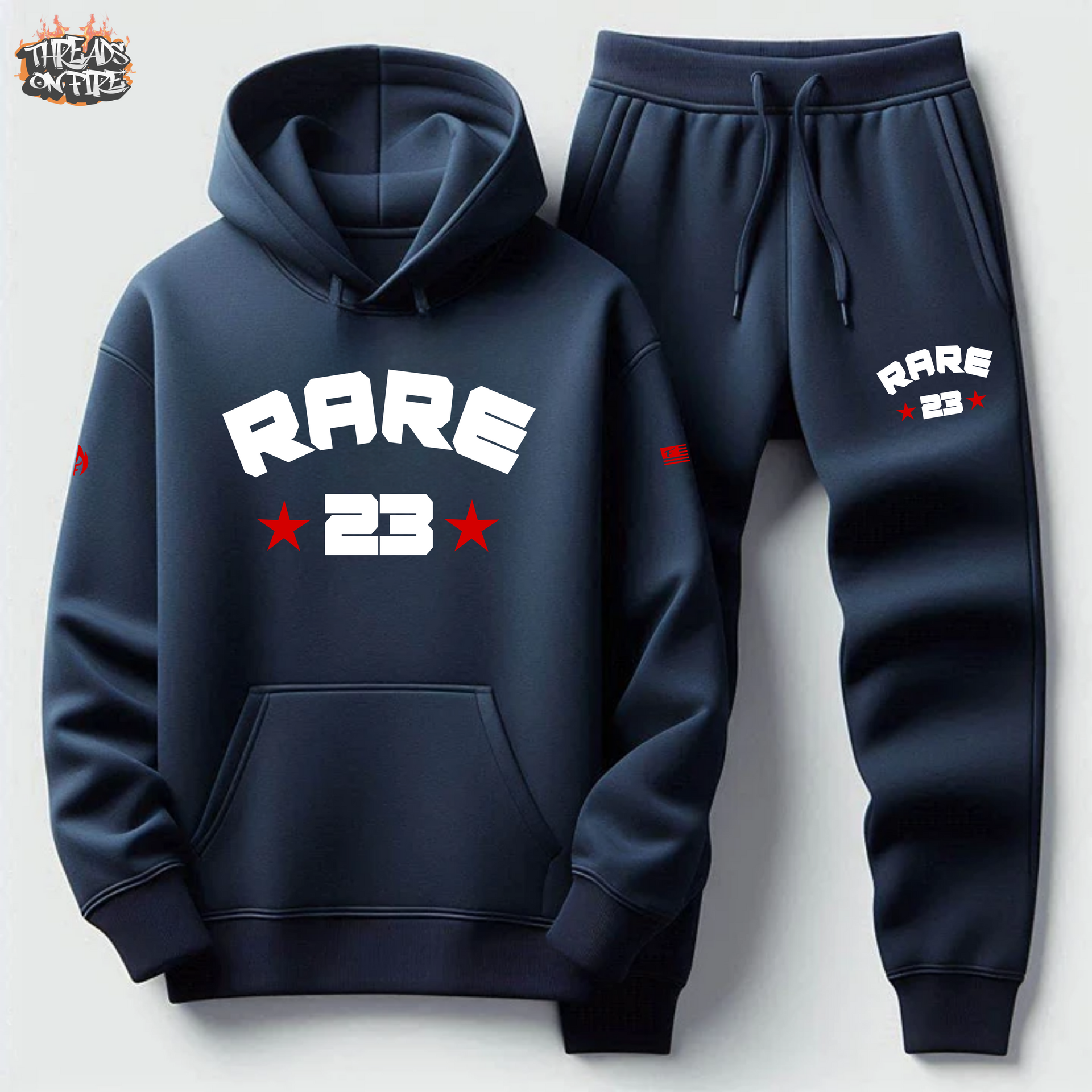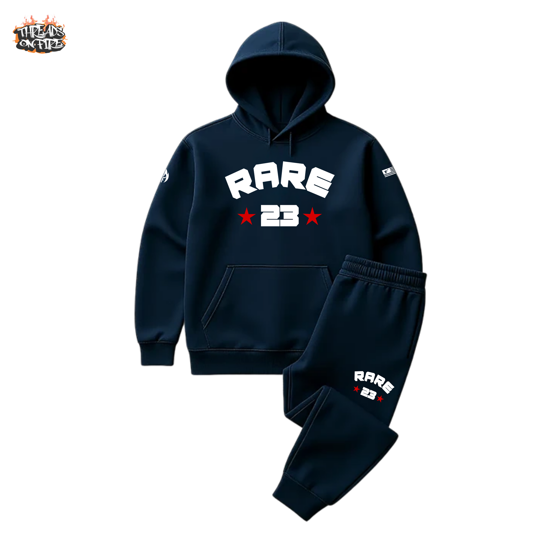 Men's Rare Air Navy Blue Hoodie and Joggers Sweatsuit by Threads On Fire. Designed with bold puff white “Rare Air” and varsity “23” lettering, this heavyweight fleece set is made to perfectly match your Air Jordan 3 Rare Air sneakers.