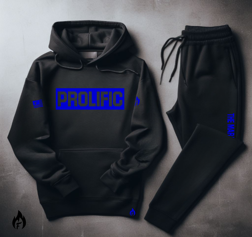 Black "PROLIFIC" Sneaker Sweatsuit For Men Inspired By Air Jordan 13 Hyper Royal Blue Black Colorway