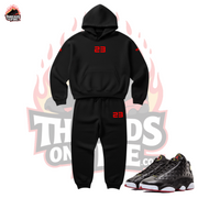 Men's Black 23 Sweatsuit To Match Air Jordan 13 Playoffs Black Red Sneaker Hoodie and Joggers Set