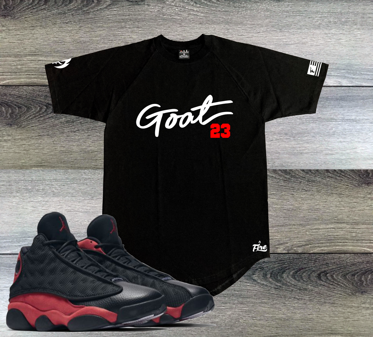 Goat 23 T-Shirt To Match Air Jordan Retro 13 Bred Black Red Sneaker Tees