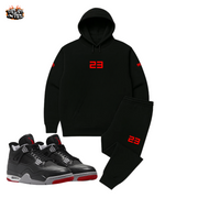 Men's '23' Black Red Hoodie Sweatpants Sweatsuit To Match Air Jordan 4 Bred Reimagined