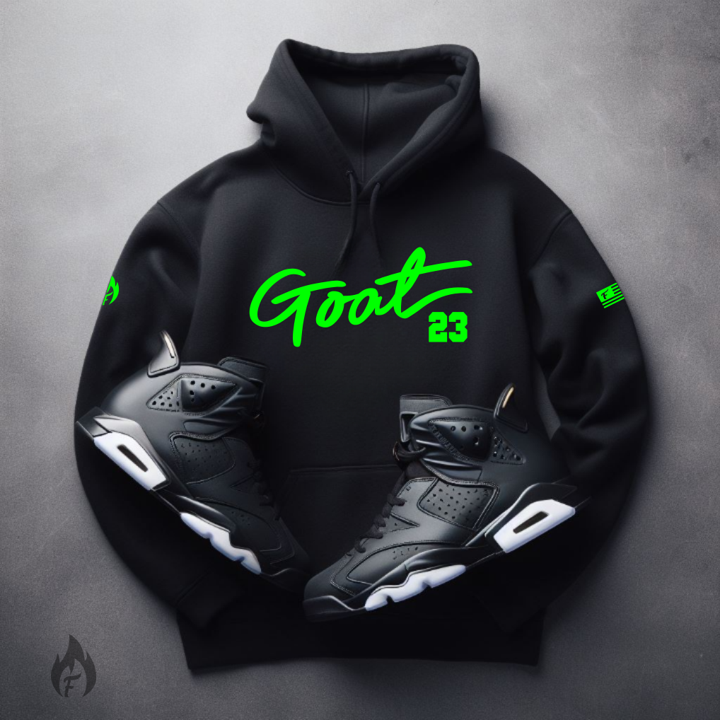 Men's Sneaker Matching Black Hoodie Goat 23 Sweatshirt For Air Jordan 6 Retro Electric Neon Green