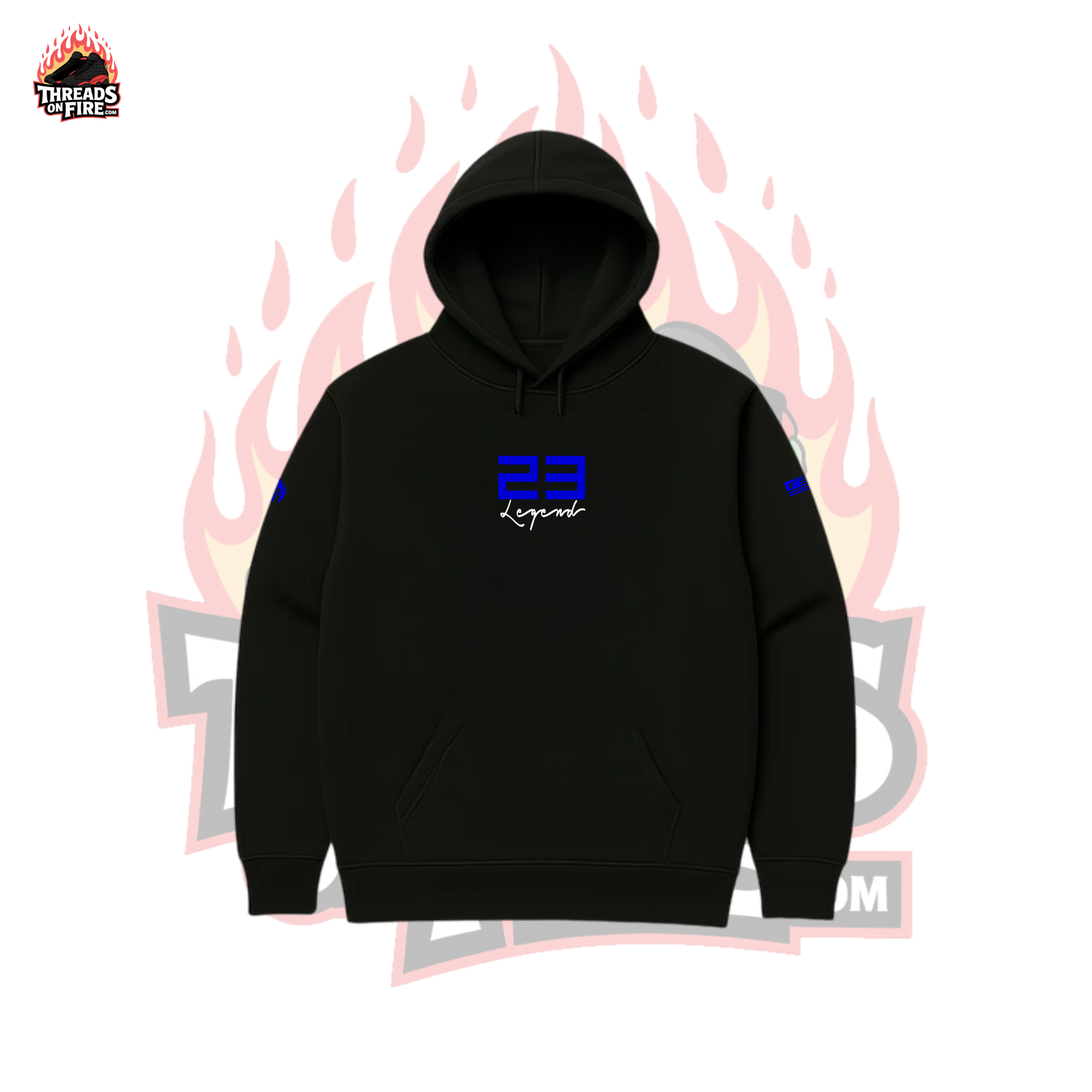 Yo, you looking for the freshest, most comfortable gear that perfectly matches your kicks? Check out our men's "23 Legend" Black Sneaker Sweatsuit To Match Air Jordan 13 Retro Hyper Royal blue and black colorway. So don't wait. Cop now and step up your game with FIRE! "23 Legend" Men's Black Sneaker Matching Sweatsuit.