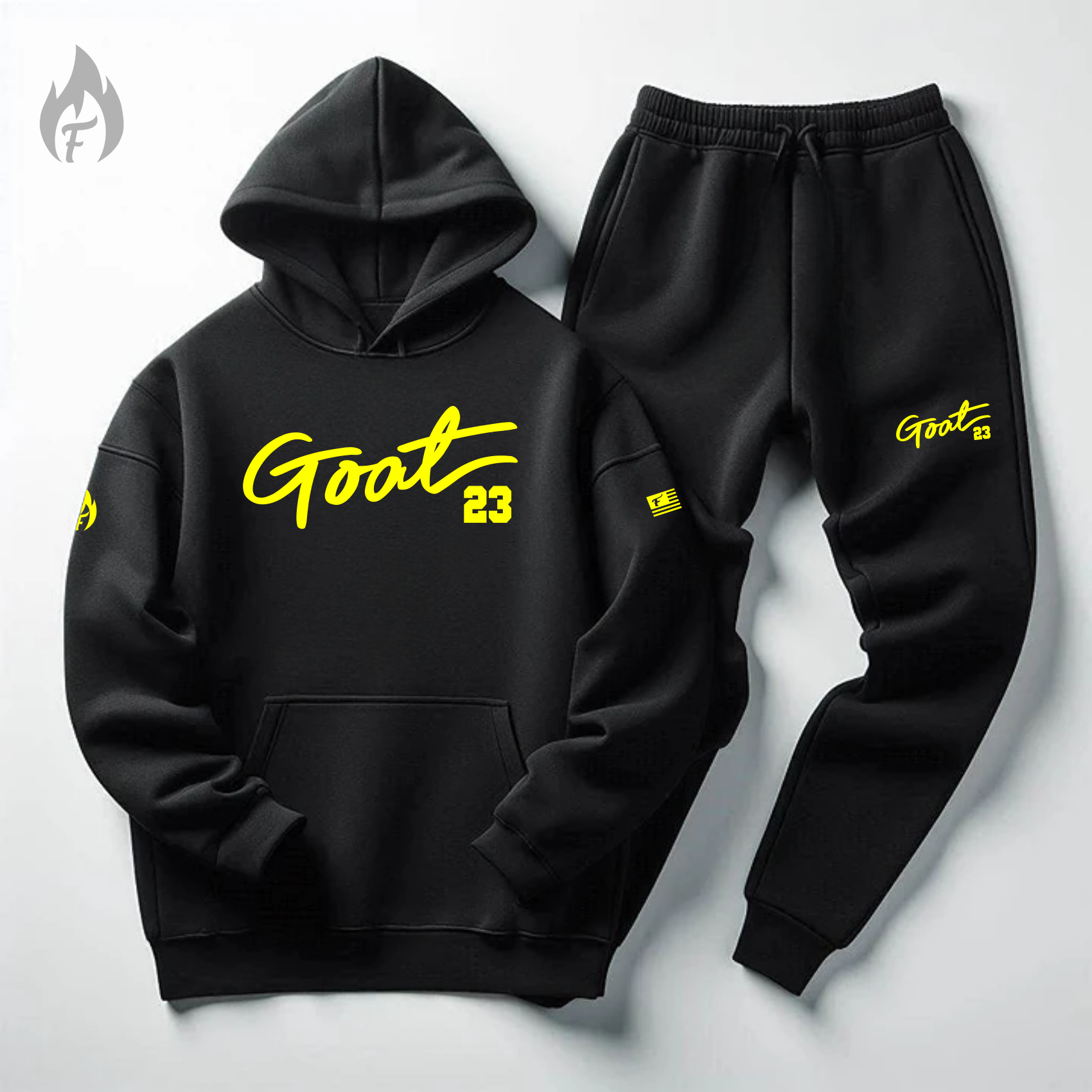 Men's Goat 23 Sweatsuit Hoodie Joggers Black & Yellow Tracksuit Set To Match Air Jordan 4 Thunder