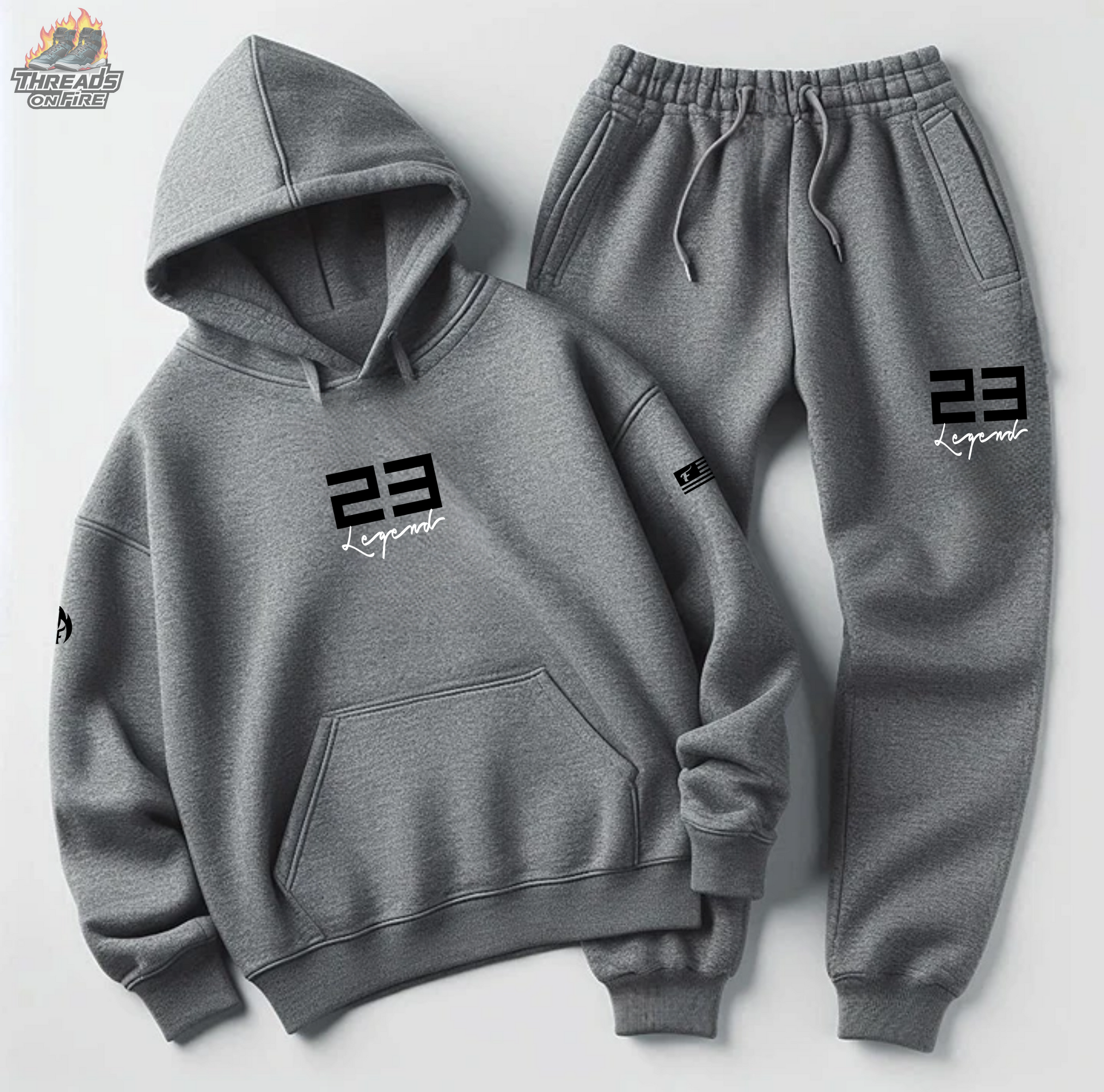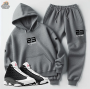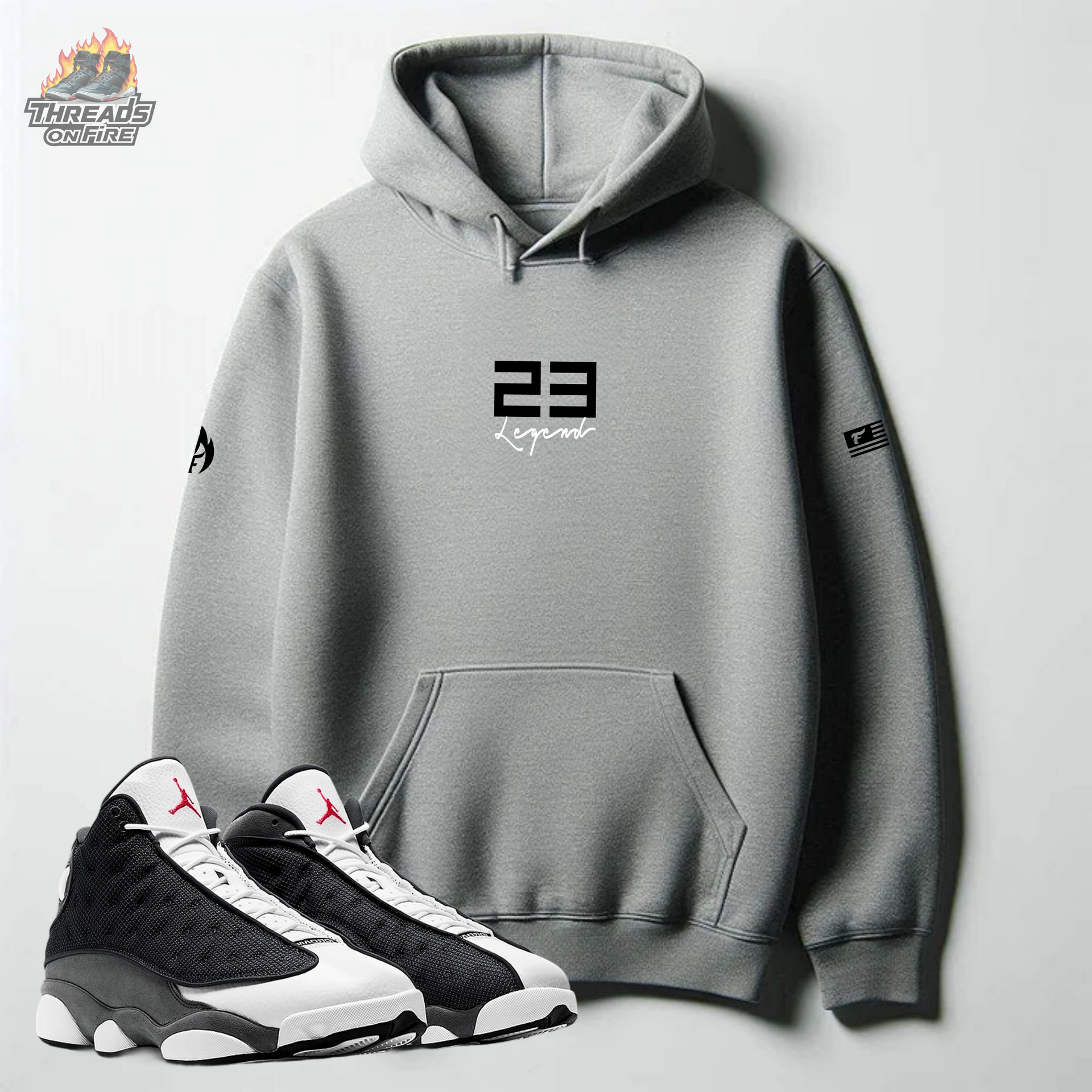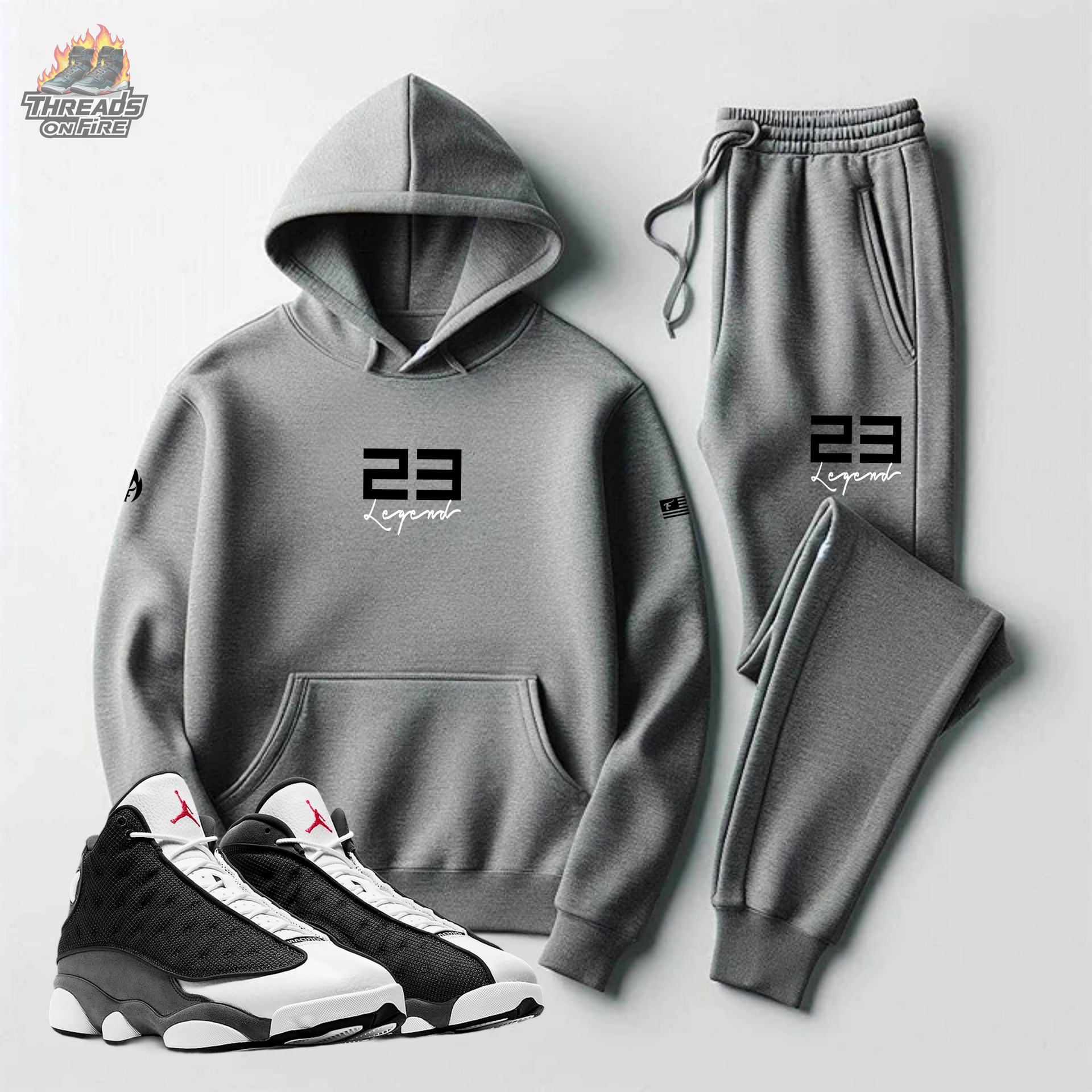 Check out our "23 Legend" Grey Hoodie & Joggers Sweatsuit To Match Air Jordan Retro 13 Black Flint colorway! So don't wait. Cop now.