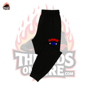 Unisex, ribbed gusset at crotch, ribbed bottom cuff and waistband, tapered fit, flat draw cords, 5-thread stitching, angled side pockets, 1 back pocket.