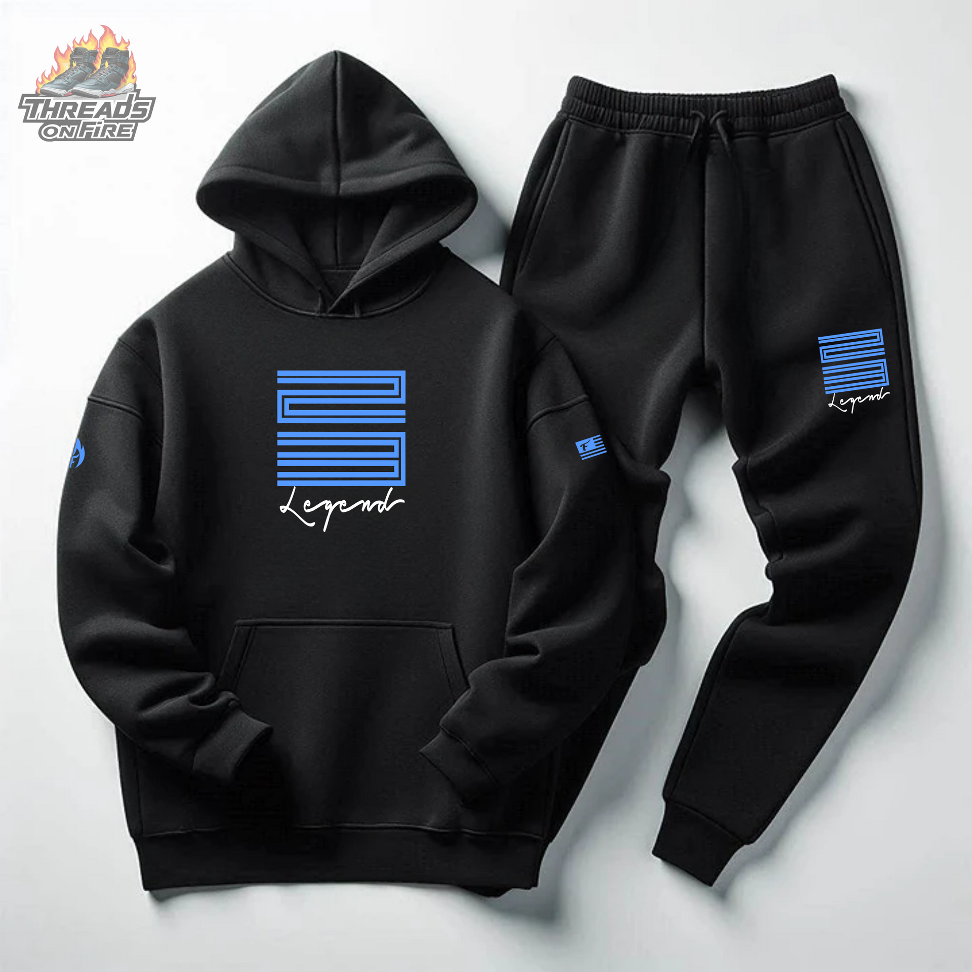 Check out our "23 Legend" Black Sweatsuit To Match Air Jordan 11 Legend Blue colorway! Features a bold "23 Legend" sneakerhead graphics logo on the front in striking color.