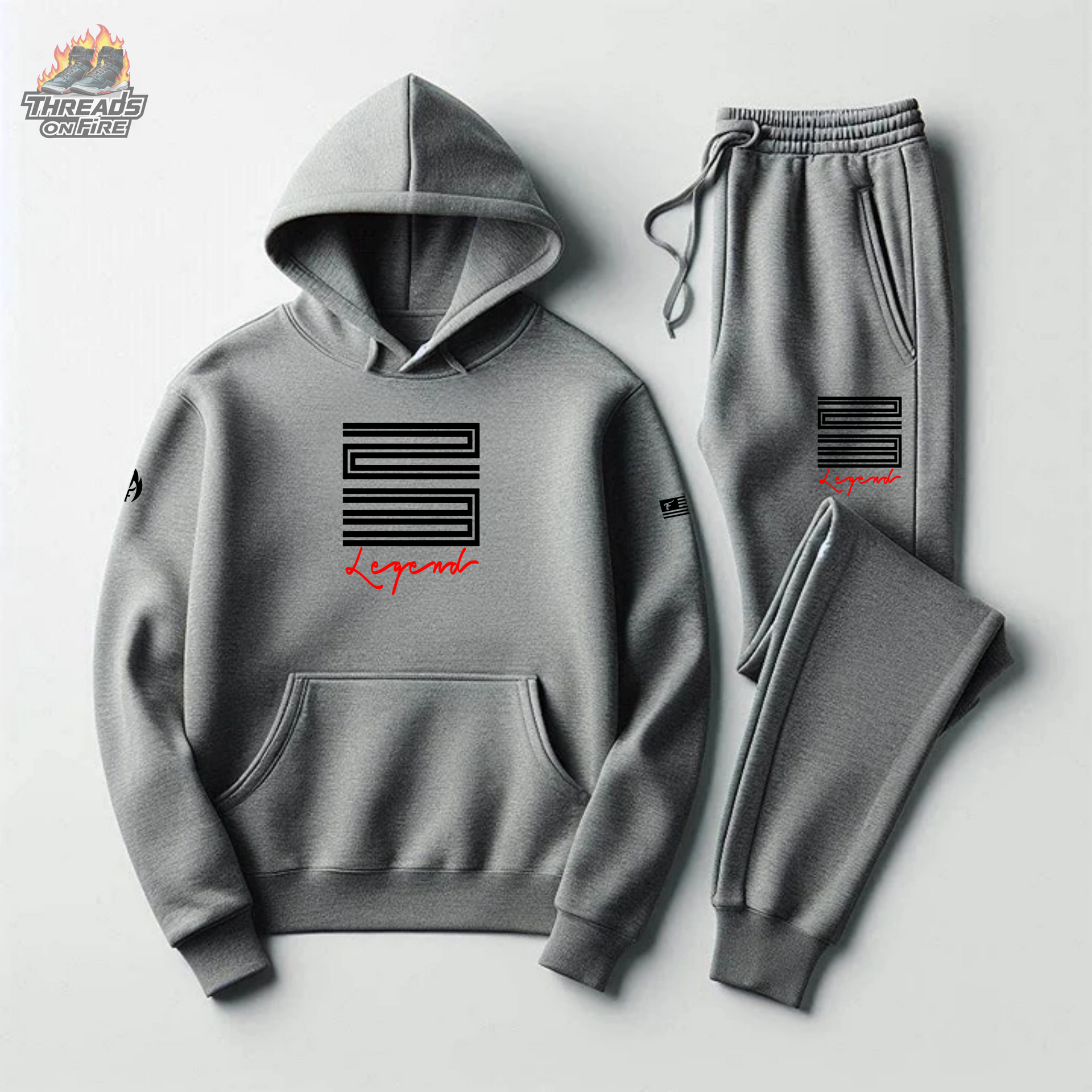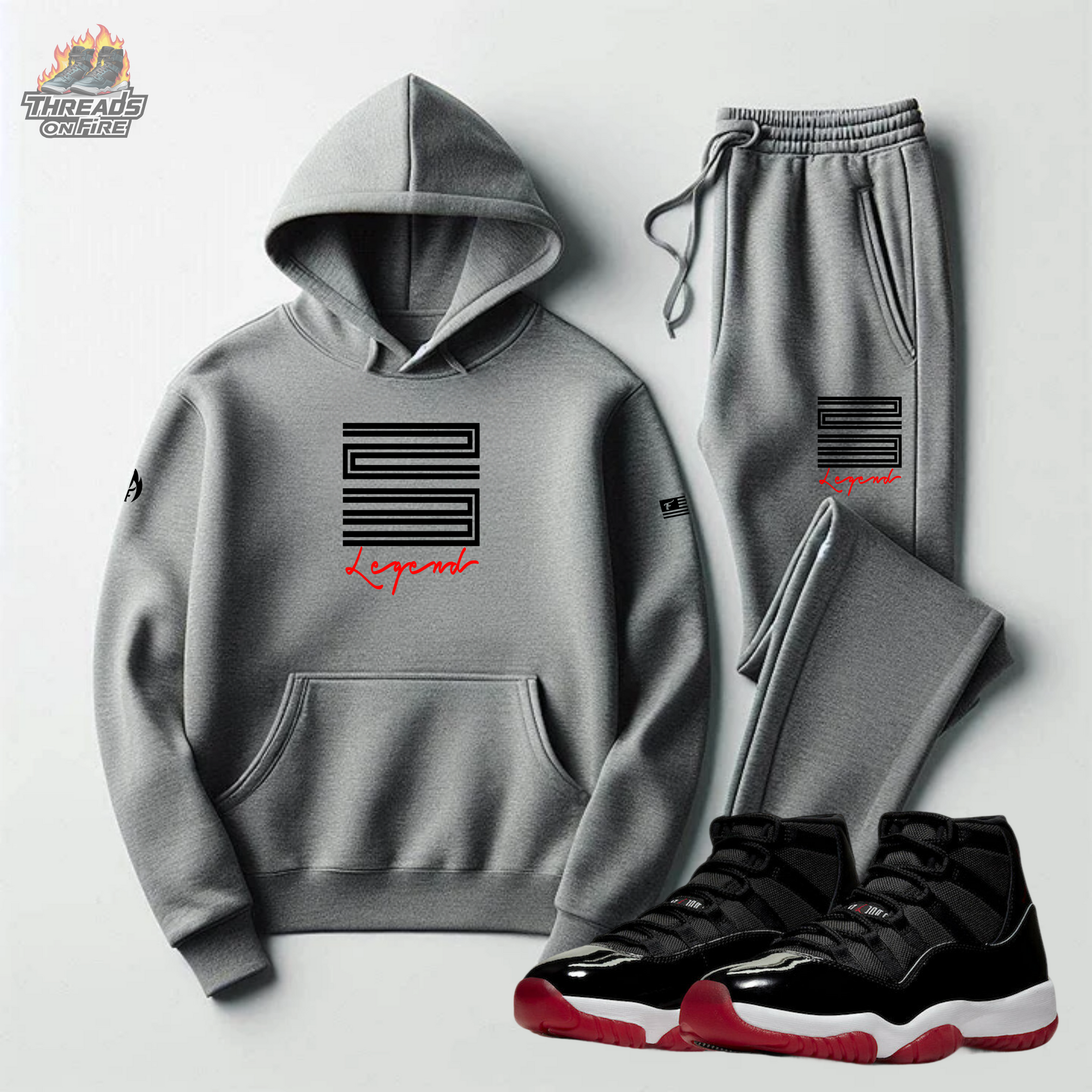 Men's Grey Hoodie & Joggers 23 Legend Sweatsuit To Match Air Jordan 11 Bred Sneakers