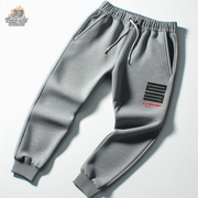 Unisex, ribbed gusset at crotch, ribbed bottom cuff and waistband, tapered fit, flat draw cords, 5-thread stitching, angled side pockets, 1 back pocket.
