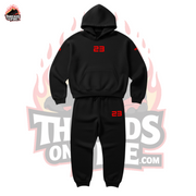 Bring championship energy with the Threads On Fire 23 Black Sweatsuit, designed to sync perfectly with the classic Air Jordan Bred Colorways.